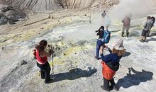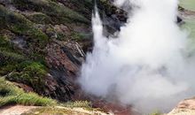 After getting to the hot springs we settle in tourist huts. Then we rest, have lunch, walk around and bathe in the springs. After dinner we spend the night in the huts.