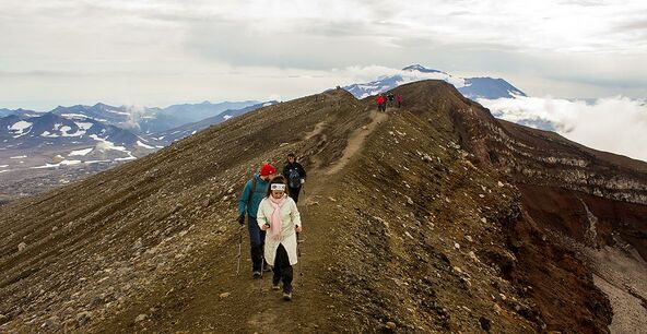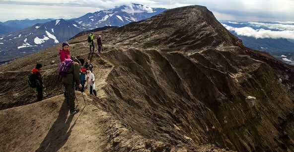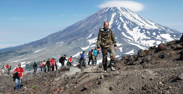 Для всех, кто прибывает на полуостров по воздуху, Камчатка начинается с города Елизово. Здесь расположен единственный международный аэропорт края. Город Елизово находится примерно в 24 км от Петропавловска-Камчатского, поэтому дорога до гостиницы не займет много времени. По пути остановимся у стелы «Здесь начинается Россия». Скульптурная композиция была установлена на фоне камчатских вулканов в октябре 2011 года и является традиционным местом для памятных фото.