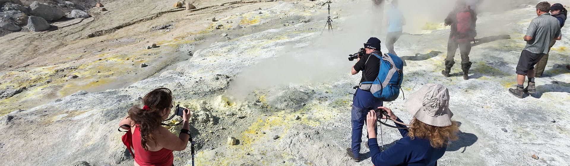 Перед восхождением — чаепитие и инструктаж. Поднимаемся к вершине по застывшим потокам лавы, которые образовали удобную дорогу. Восхождение занимает 3 часа. Передохнув и перекусив на вершине вулкана, отправляемся любоваться его кратерами.